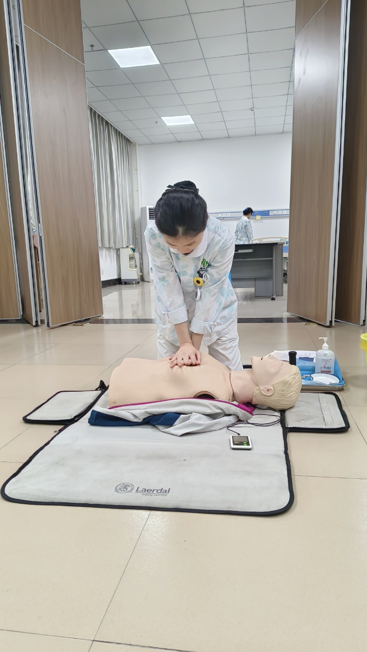 小唐护士个子矮,力气小,心肺复苏是她的薄弱项,为掌握按压力度与频率,她每天都给自己加练,别人练5个循环,她练7个循环,通过高强度反复练习,她说:“刚开始按压 1 分钟就手臂发酸,现在能连续操作 5 分钟不中断,动作也越来越标准。”