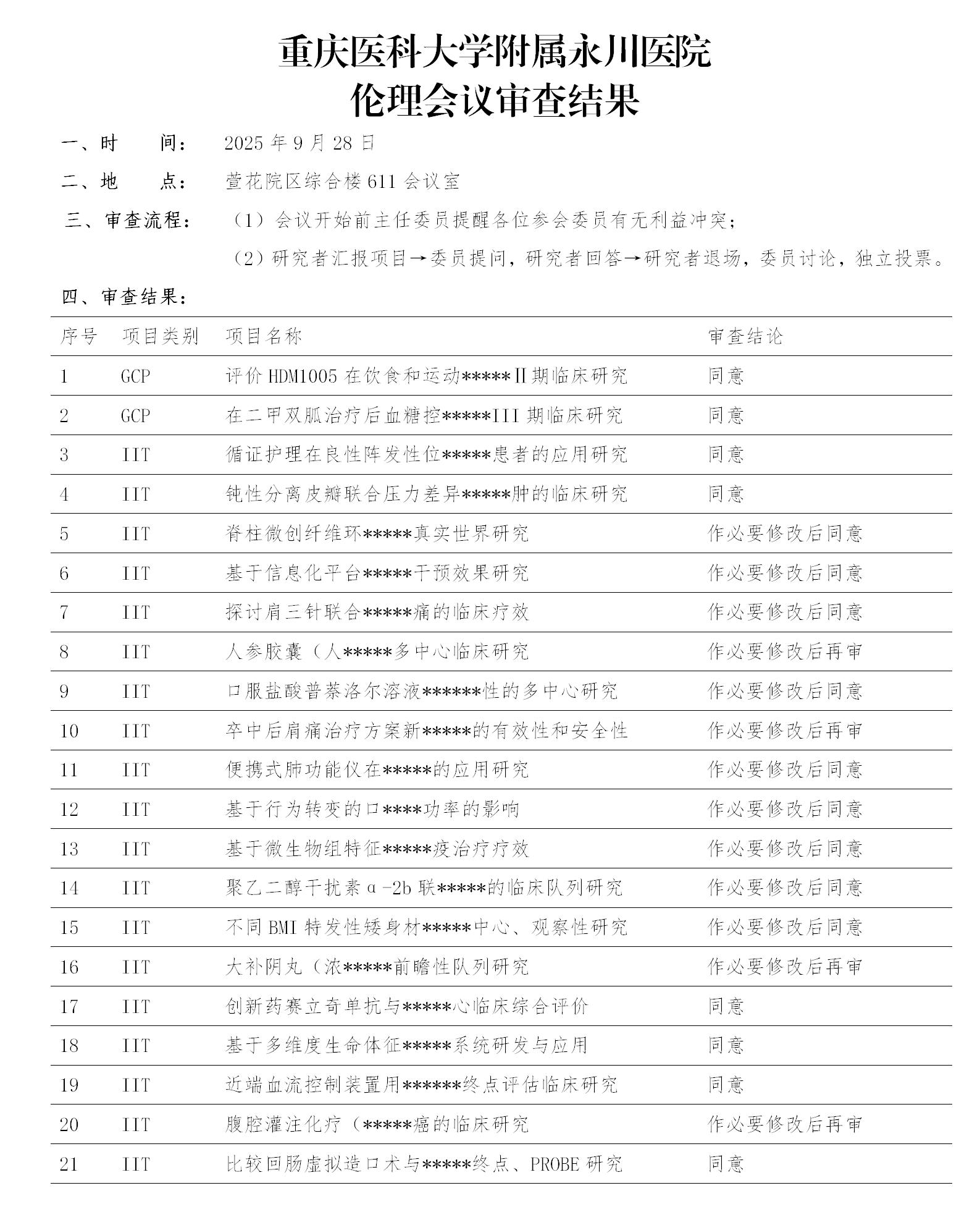 2025年9月28日伦理会审结果