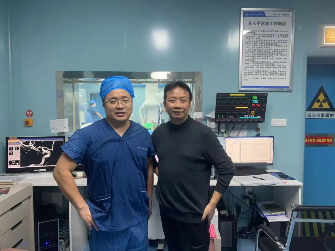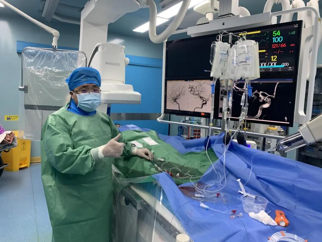 稍作休整,石会医师便与苏祖禄主任医师及当地团队展开术前讨论,仔细规划手术方案。周六上午,手术正式开始。石会副主任医师凭借精湛的手术技艺和丰富的临床经验,精准开展颅内动脉瘤栓塞术,每一个步骤都严谨细致、稳扎稳打。当地医护团队密切配合,术中监护、器械传递等各项工作有条不紊。经过数小时的紧张奋战,手术最终取得圆满成功,患者的生命体征趋于平稳,成功脱离生命危险。