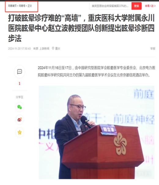 值得一提的是,赵立波教授已累计在国家级、省部级学术会议上围绕 “眩晕四步诊断法” 授课 10 余次,覆盖中国中西医结合学会眩晕病专业委员会第九届眩晕医学学术会议、第十五届西部神经病学大会等重要学术盛会,其系统化的诊疗思路和实操性极强的方法体系,获得国内眩晕领域专家的高度认可。此次论文的刊发进一步确立了该方法的学术地位。