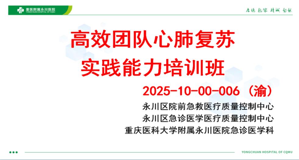 12月19日,重庆市继续医学教育项目“高效团队心肺复苏实践能力培训班”在我院举办。本次培训由永川区院前急救医疗控制中心、急诊医学医疗质量控制中心与我院共同承办,吸引了区域多家医疗单位的医护人员积极参与。培训班紧扣临床急救实际需求,课程内容兼顾专业深度与实践指导性,我院急诊医学科专家团队担任主讲。