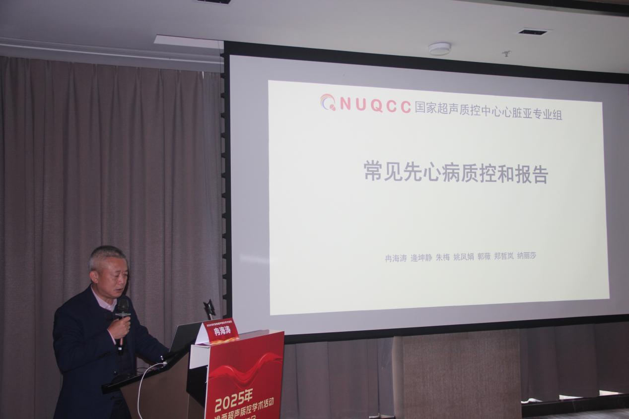 重庆市超声医学质量控制中心主委冉海涛教授以《常见先心病质控与报告》为题,结合临床案例,系统讲解了常见先天性心脏病超声诊断中的质控要点与报告规范。他强调,规范化的扫查流程、标准化的图像存储与统一的诊断标准是保障诊疗安全、对患者生命健康负责的重要基石。
