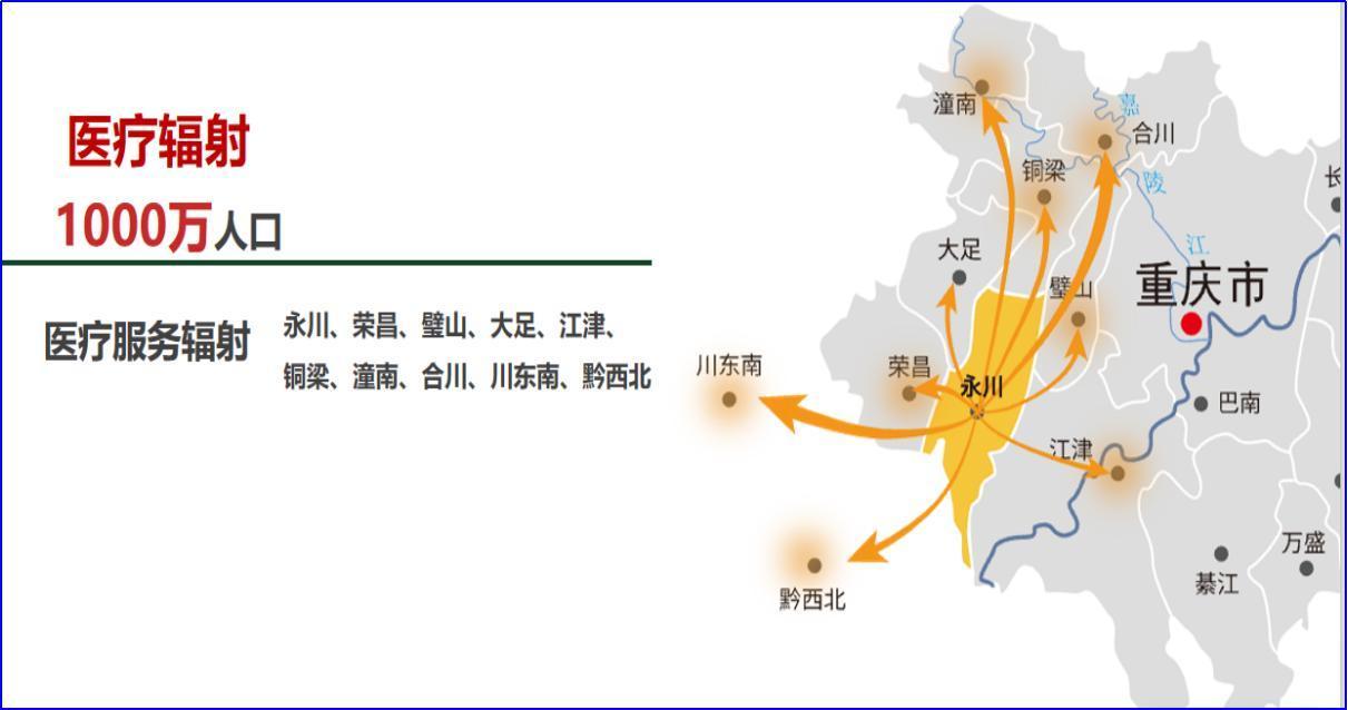 重庆医科大学附属永川医院(重庆市第二人民医院/重庆医科大学第五临床学院)坐落于成渝双城经济圈“桥头堡”永川区——是重庆城市副中心,渝西国际开放枢纽,高铁16分钟直达主城,1小时畅达成都。