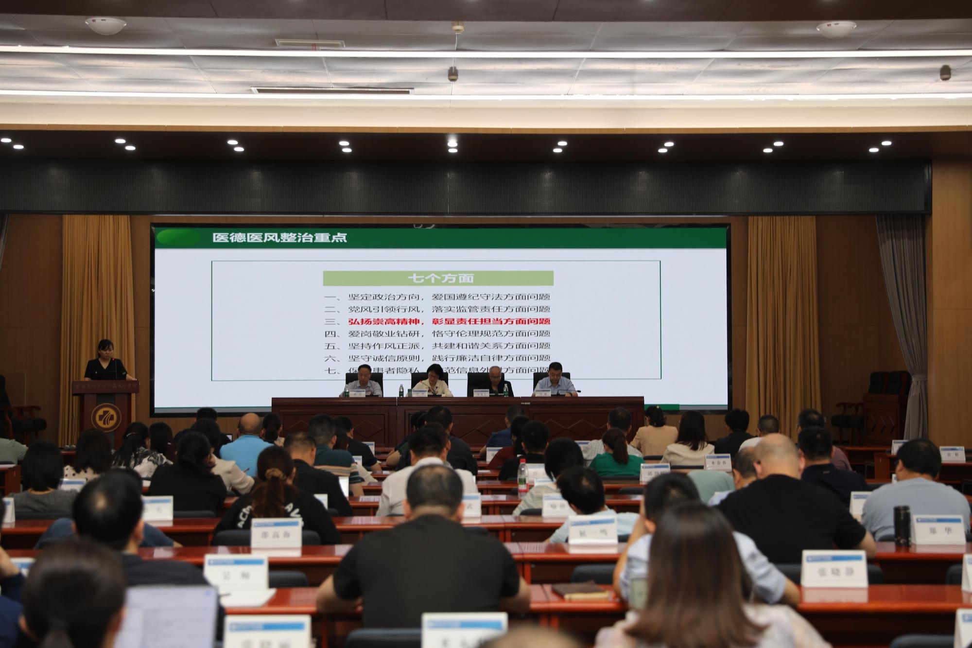 为深入贯彻落实新时代卫生健康工作方针,持续深化医院行风建设,扎实推动医德医风突出问题集中整治走深走实,9月30日上午,医院在萱花院区613会议室召开医德医风专题会。全体在家院领导出席会议,各党支部书记、中层干部参加会议。会议由党委书记刘利主持。