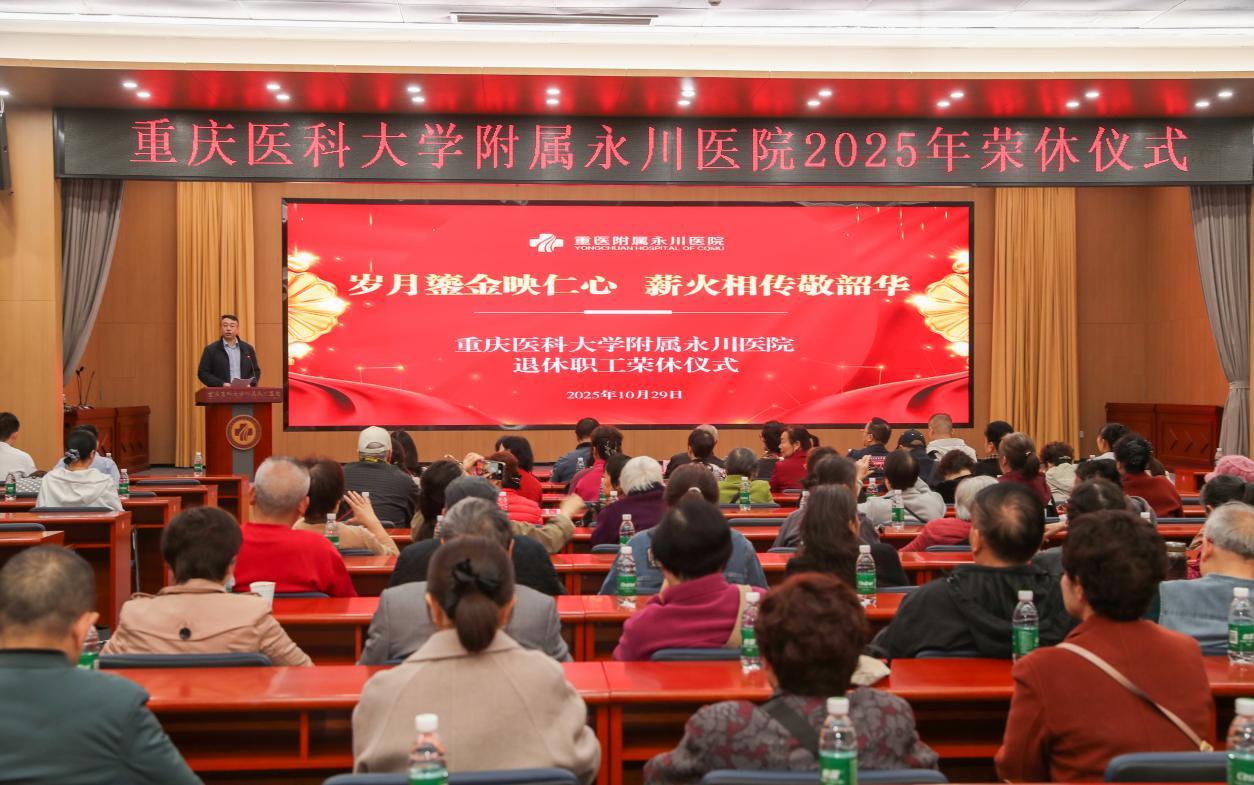 为弘扬退休职工厚德精业、仁心济世的崇高精神,让“永医精神”在传承中凝聚成奋进的力量,10月29日上午,医院举行以“岁月鎏金映仁心 薪火相传敬韶华”为主题的荣誉退休仪式。院领导班子、职能科室中层干部、荣休职工、新进职工及学生代表100余人齐聚一堂,共同见证这一庄严而温馨的时刻。仪式由副院长杨德雨主持。