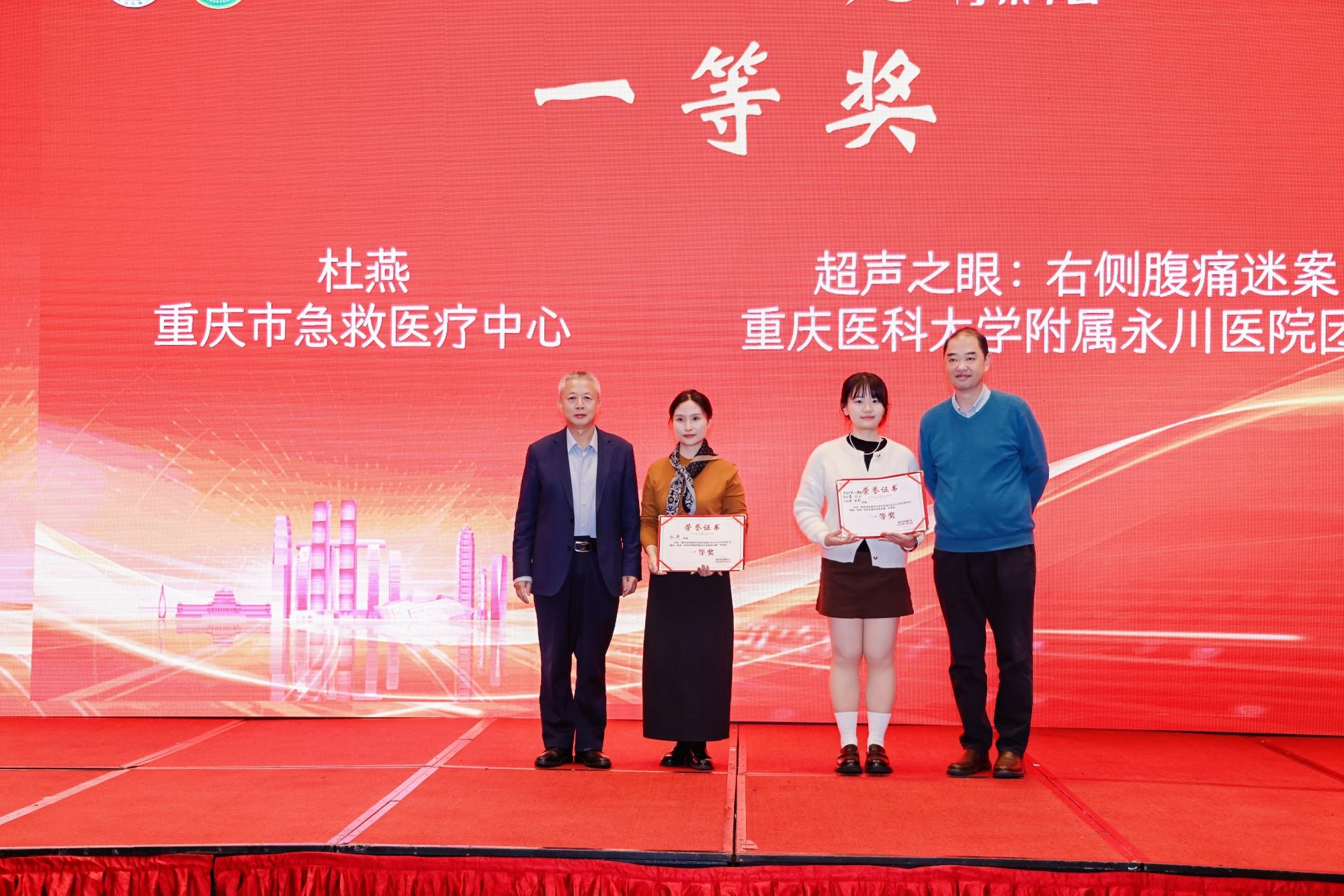 11月22日,由重庆市医师协会主办的重庆市医师协会超声医师分会学术年会在重庆沙坪坝区召开,我院超声医学科张东竹主任、刘学主任带队组建的青年医师团队,在年会重点环节——“青年医师科普秀竞赛”中表现优异,从十余支参赛队伍中脱颖而出,以总分第一名的成绩荣获一等奖,充分展现了我院超声医学科在专业实力与健康科普创新方面的双重优势。