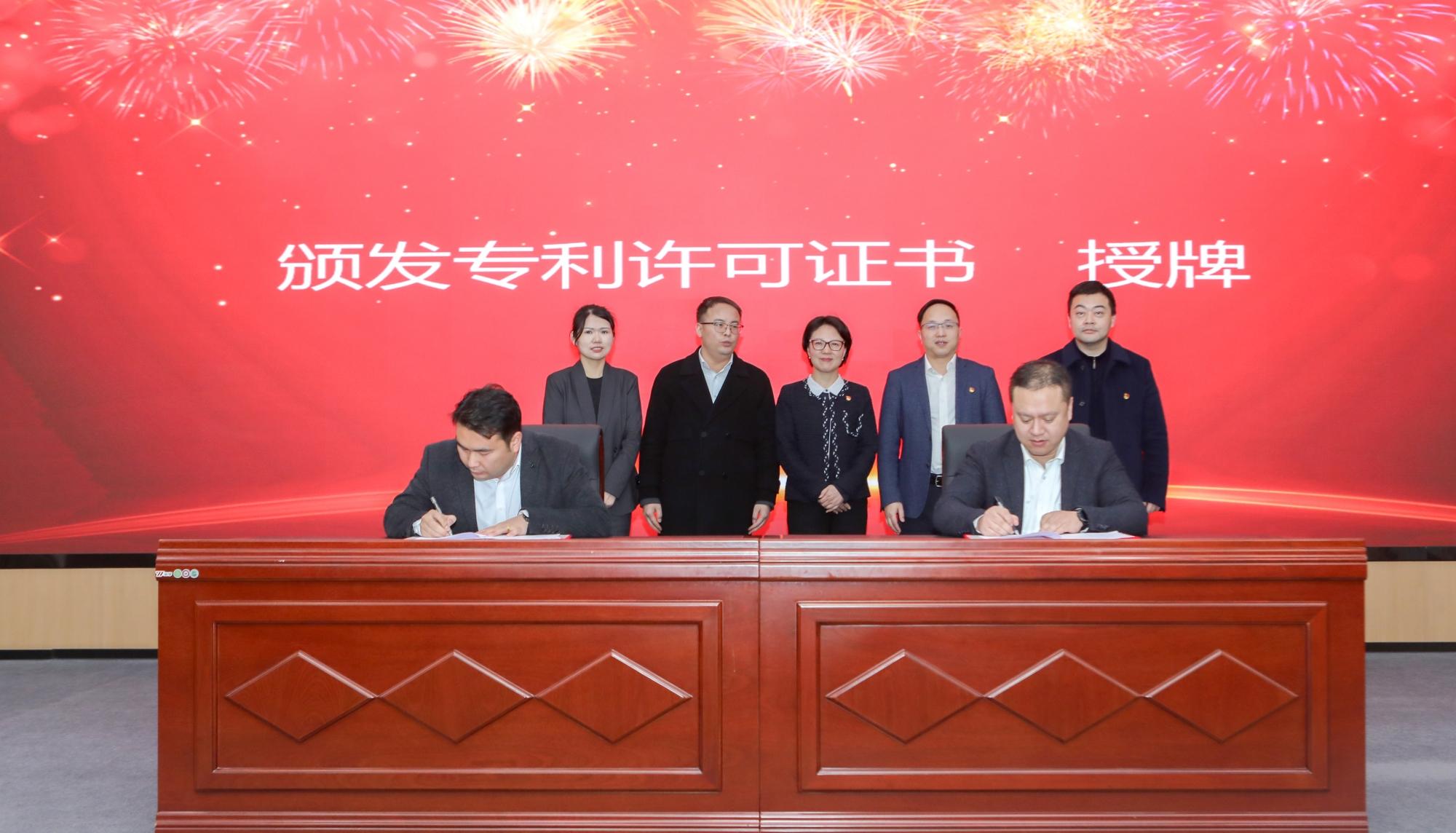 签约仪式进入核心环节。我院两项专利成果《一种浮针自动扫散装置》与《一种肱动脉压迫止血器》进行转化签约,周昌龙与驼人集团相关负责人完成签约,双方共同为项目代表马坤龙、娄方琴举行了现场授牌及专利许可证书颁发仪式。