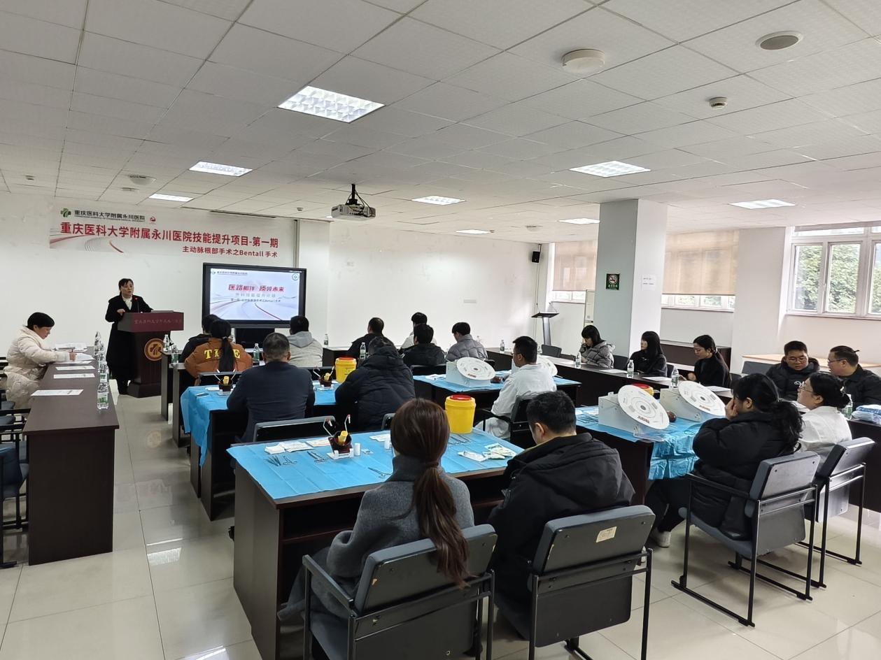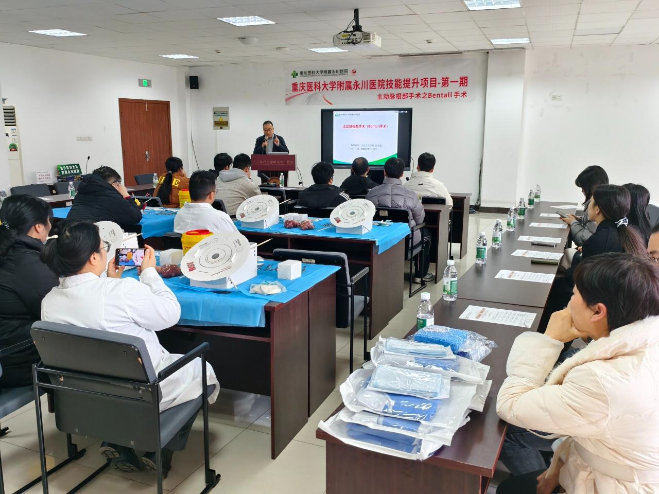 为持续提升外科医师临床技能水平,推动心脏大血管专病诊疗中心高质量发展,1月26日,我院继续教育中心举办第一期外科技能提升培训班,主题为《主动脉根部手术之Bentall手术》专项培训。本次培训为小班教学,院内全科转岗医师、住院医师、青年骨干及进修人员20余人参与。