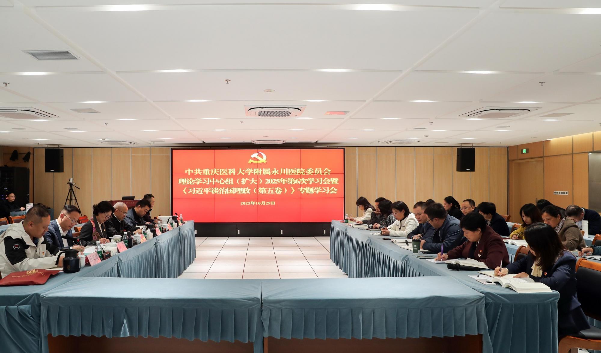 医院召开党委理论学习中心组(扩大)2025年第6次学习会暨《习近平谈治国理政(第五卷)》专题学习会