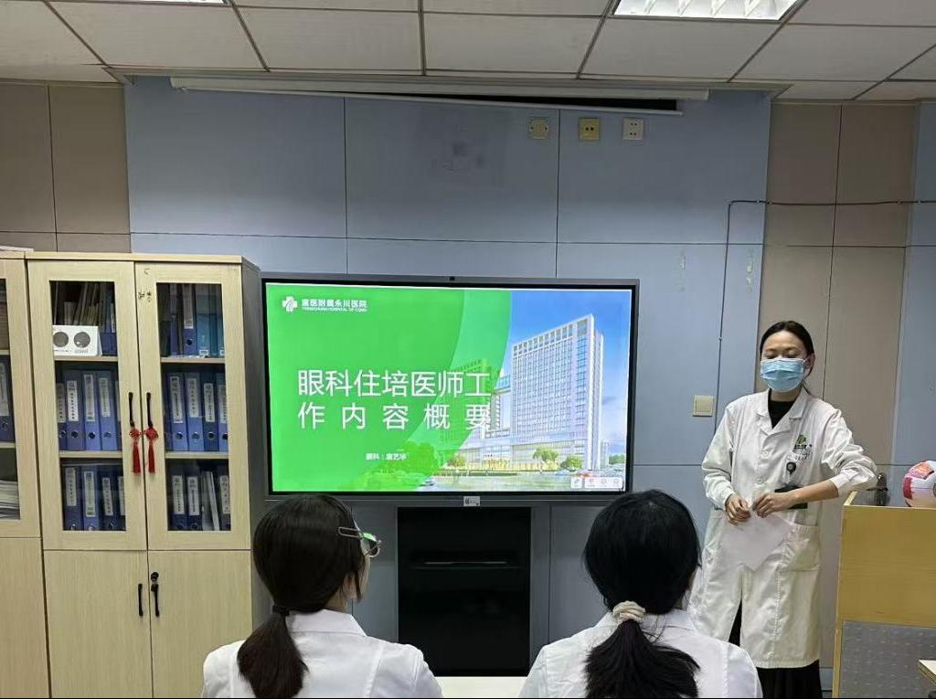 这份工作内容,包含眼科住院医师的日常工作流程、常用检查设备使用技巧、与患者及带教老师的沟通心得等核心内容。更宝贵的是,她结合自身经历,总结了 “住培期间必须掌握的技能”、“容易踩坑的注意事项”以及“快速成长的努力方向”,为新人描绘出一幅清晰的学习成长地图。唐医师没有进行枯燥的说教,而是以一位亲切学姐的身份,将这份凝聚了心血的经验总结娓娓道来,她分享了自己初为住培医师时的忐忑与趣事,也讲述了如何通过努力从“手足无措”到“独当一面”的蜕变历程。“希望我的这些经验能让大家少走一些弯路,更快地爱上眼科这个充满光明的专业”,她真诚的鼓励和实用的分享,赢得了新学员们热烈的掌声和由衷的感谢。这不仅是一次入基地教育,更是一场精神的传承,让新学员们感受到了科室大家庭的温暖与支持。